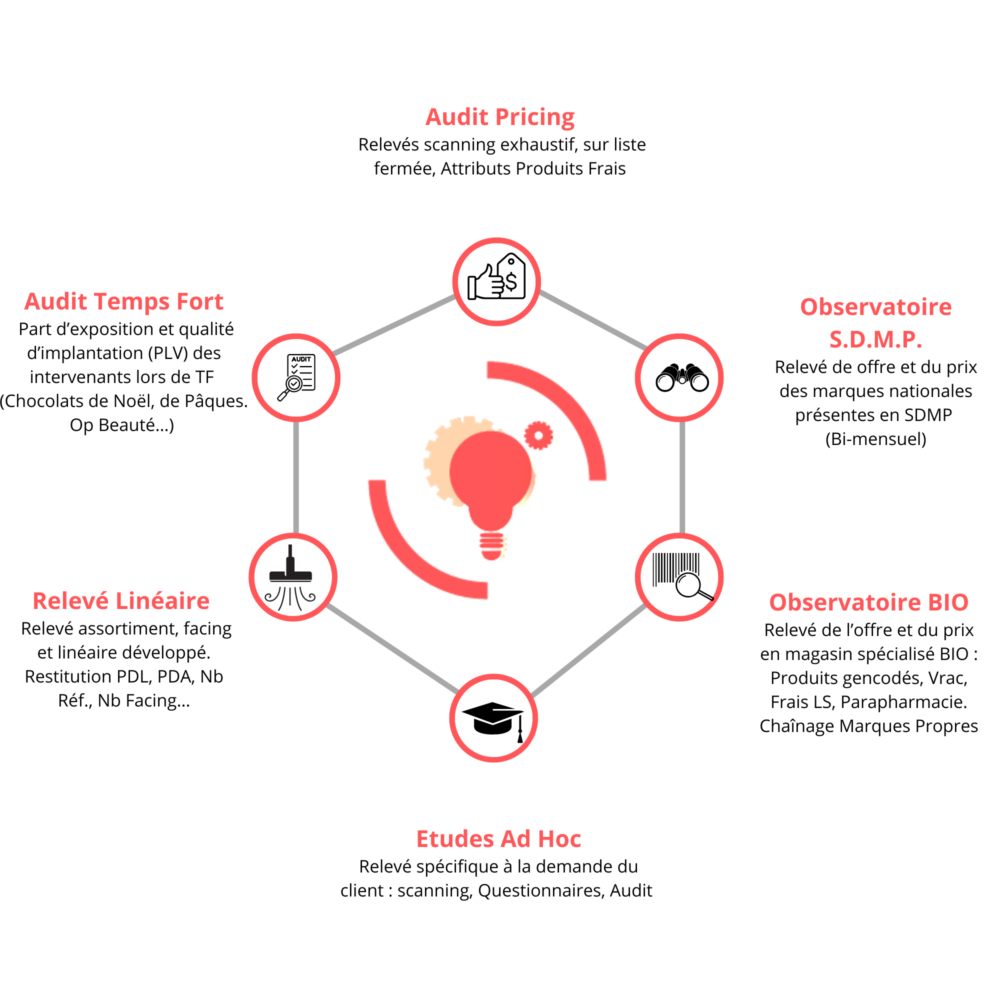 Thanks to our regular audits, we provide valuable data for optimizing performance index and product visibility. We carry out precise surveys of price indices, assortment share, shelf share, display share, and much more.